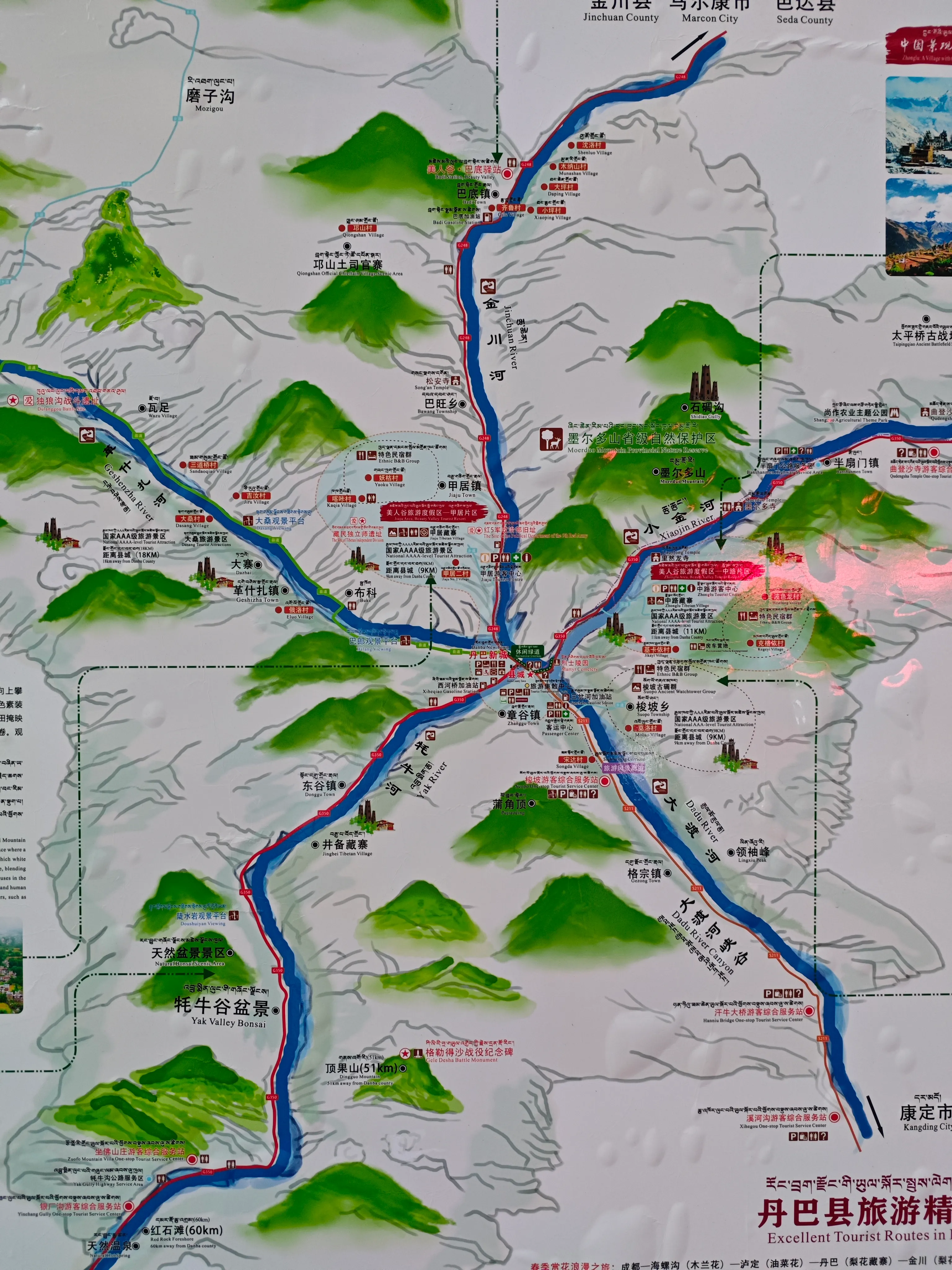 看到当地的宣传图上,大渡河是由小金河、革什扎河、金川河、牦牛河等汇聚而成的。
