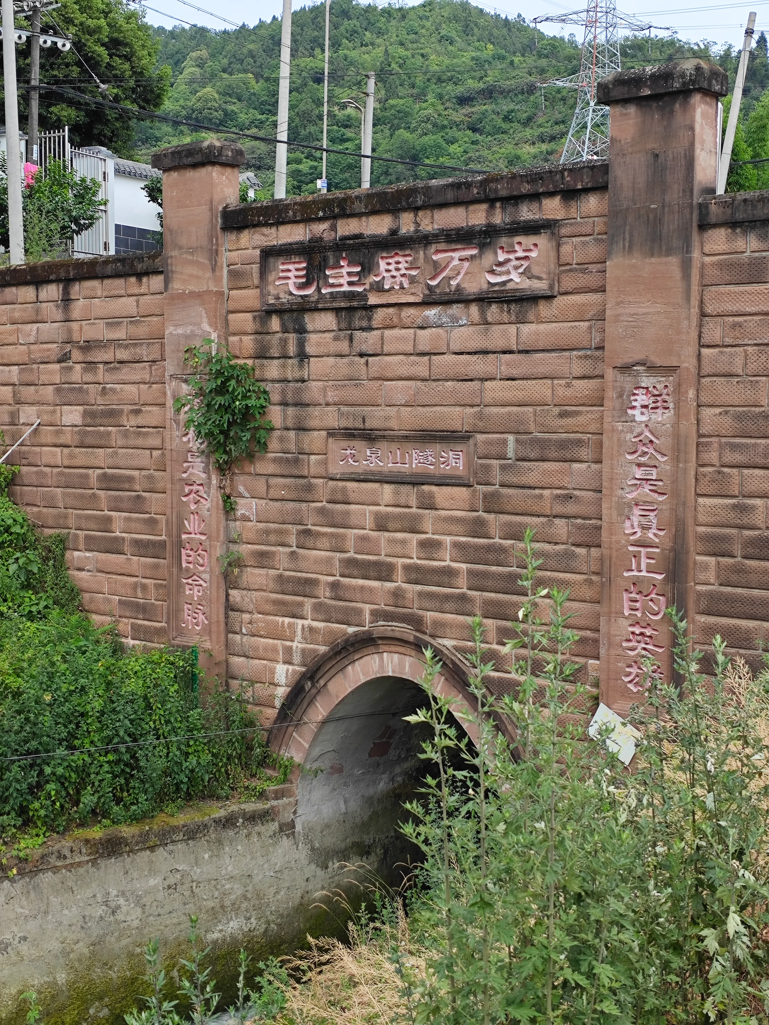 骑完总干渠之后,又向龙泉山方向骑了两公里,就看到了龙泉山隧洞。洞口上,当年的标语还清楚可见。