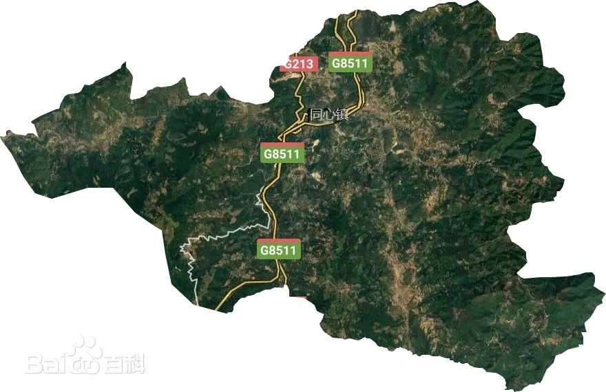- 同心镇境内地形东西宽,南北窄,呈长方形状,东部山高谷深;西部峡谷低凹,呈掌状分布;北部群山交错。最高点位于会连村大庙山,海拔2080.5米;最低点位于漫海河与思茅河交汇处,海拔896米,相对高差1184.5米。