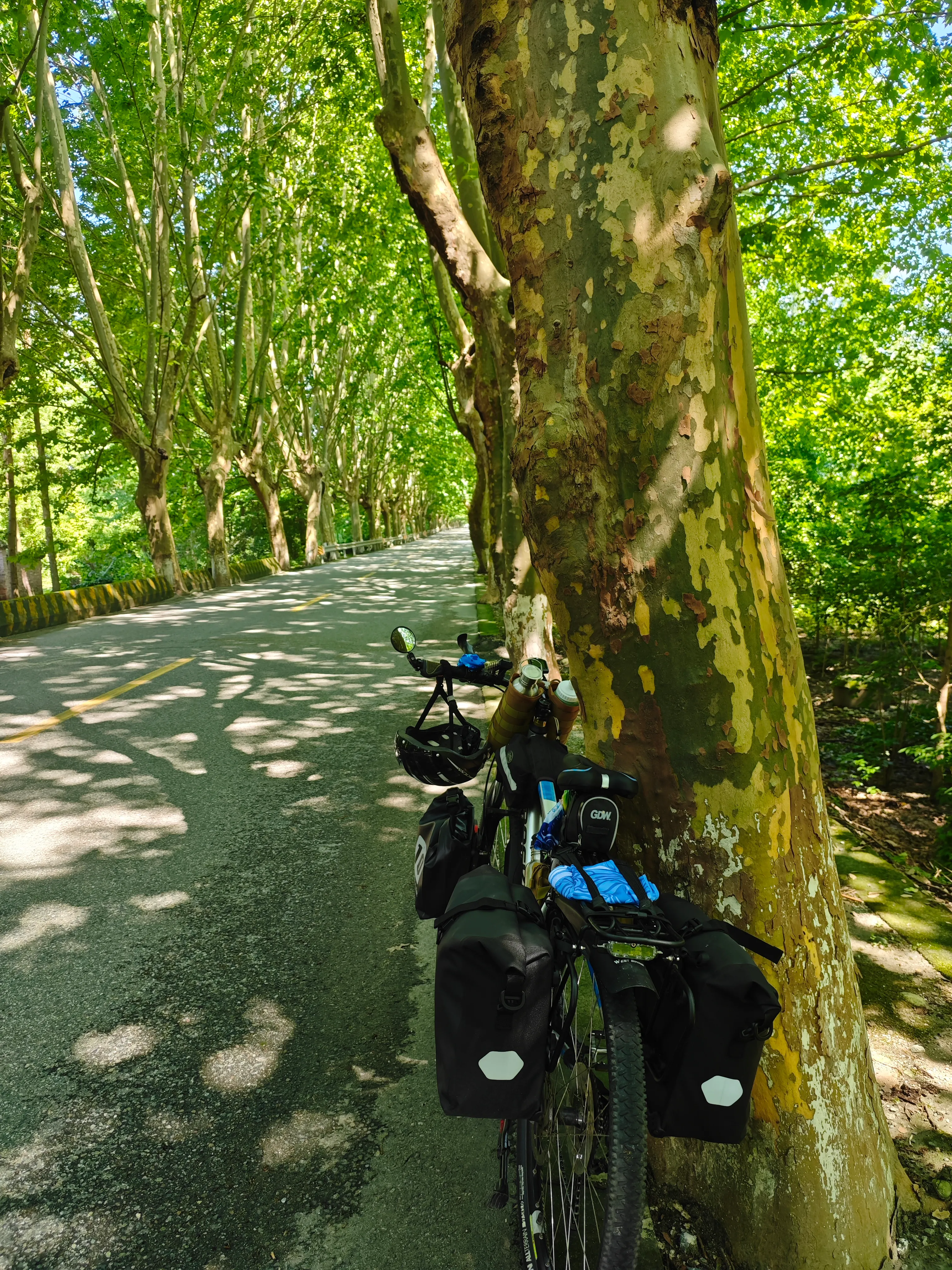 树荫遮了大部分的阳光,骑行在这样的路上并不显得可怕。