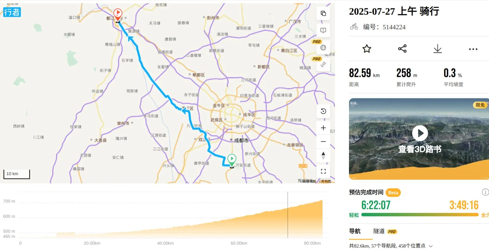 Section titled “D1:成都至都江堰”成都至都江堰的每一条道路都骑过了,没有新鲜感,本来是想跨过这段路程的,但没有找到合适的搭车方式,只有冒着高温再骑一次了。
