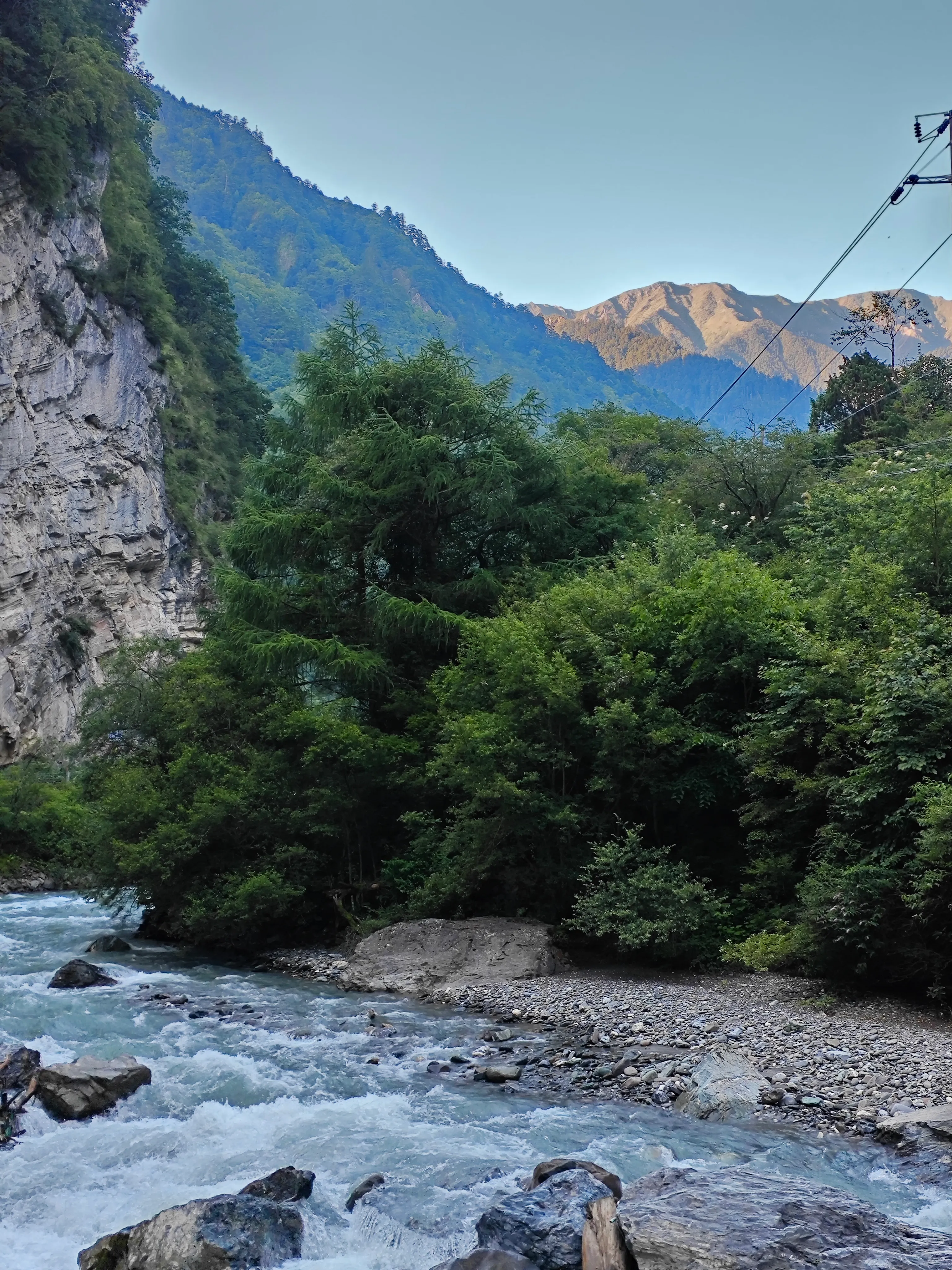 Section titled “D3:熊猫沟至四姑娘山镇”今天是艰难一天,早上早起确保能在日出时就立刻出发。早上吃了泡面,收拾后,差不多6点半出发。