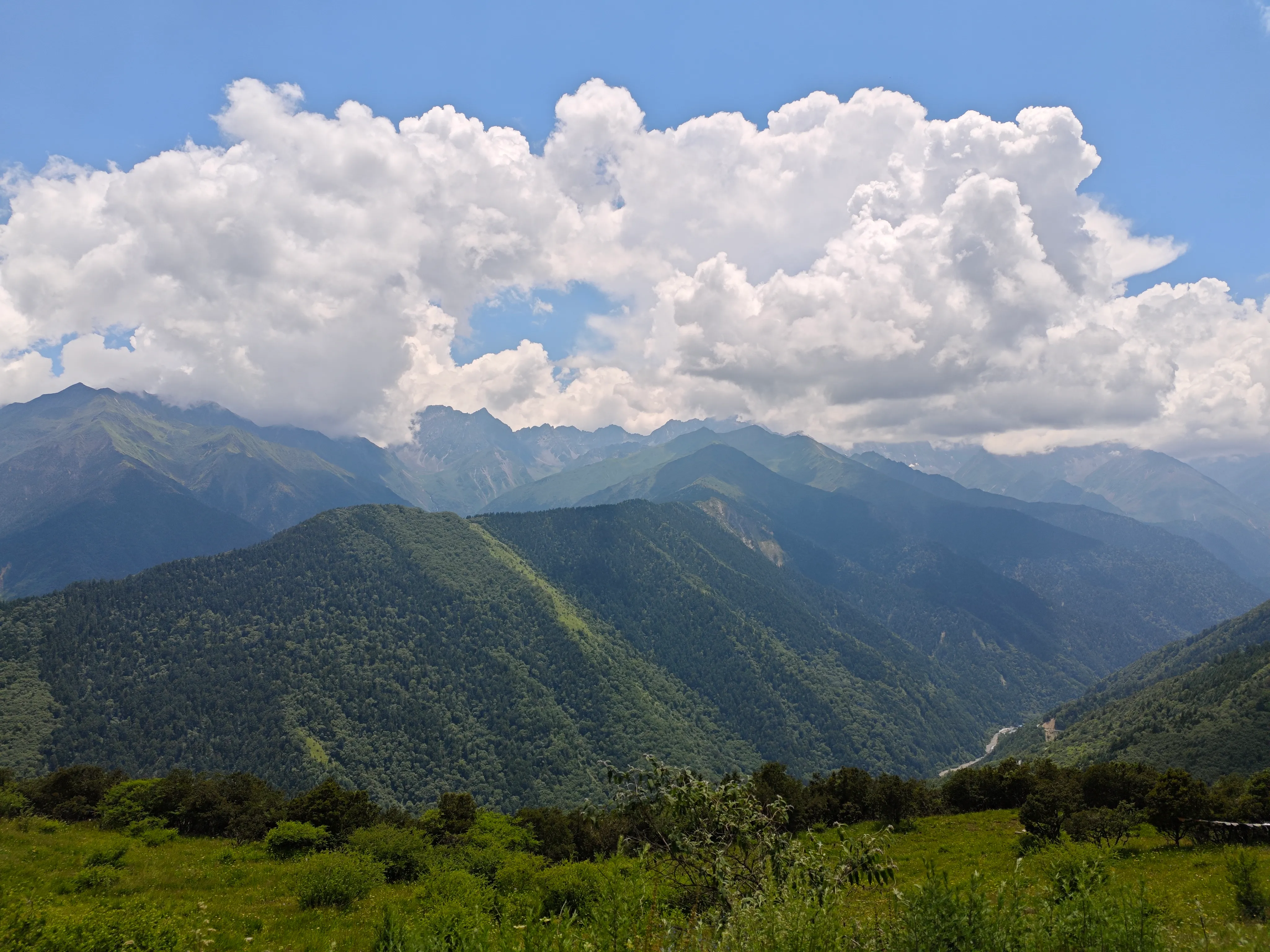 贝母坪的观景台看过去应该是大雪塘。坐看风起云涌是件很舒服的事,而且我是骑上来到这3300多米的高度的。甚至有点成就感。