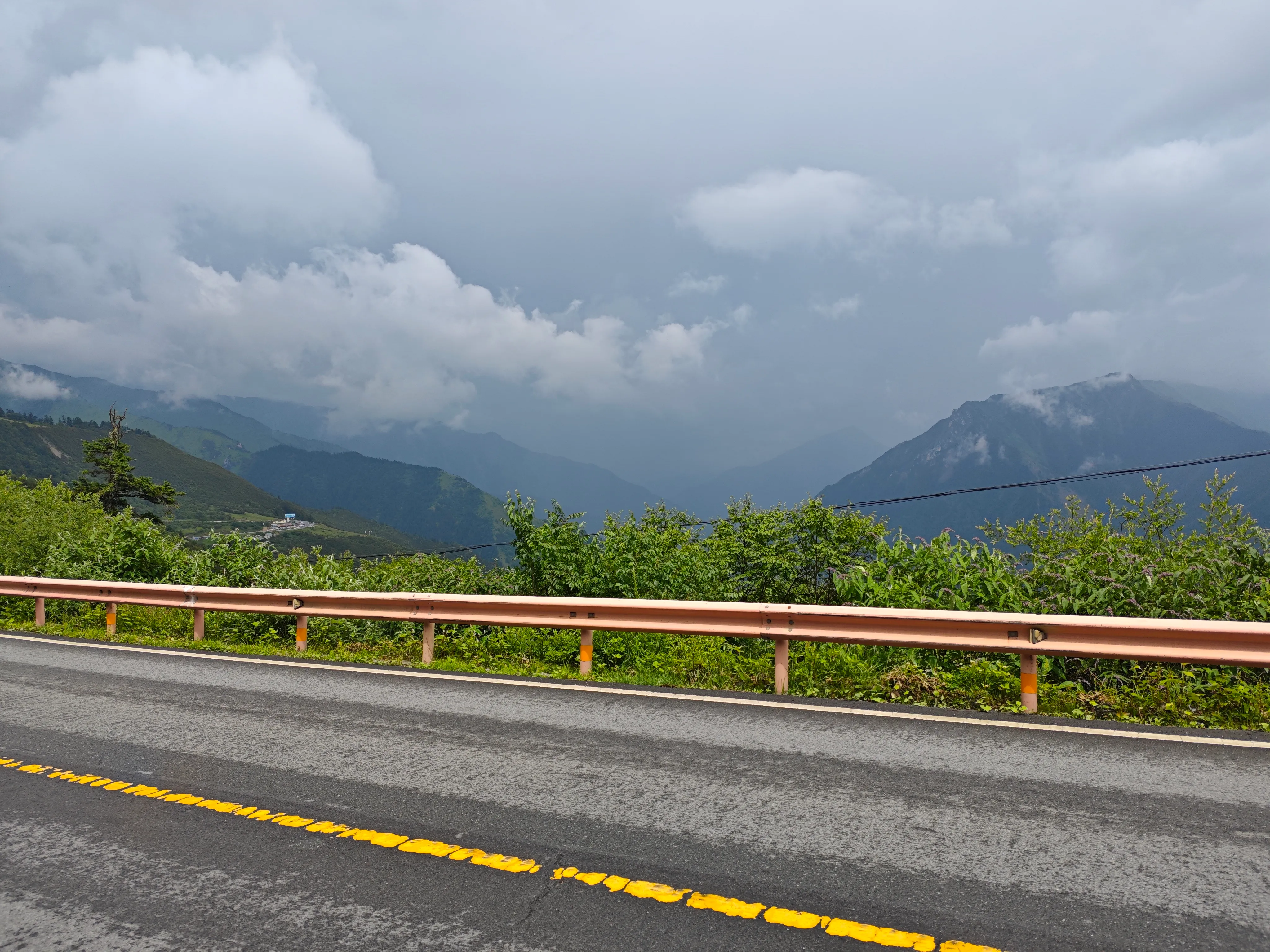 过了隧道,大约下午5点。如果天气好,剩下的路程是下降600多米到四姑娘山镇。这仍然能算是美好的一天。只是如果有坏事,那坏事一定来,墨菲定律。我刚穿好软壳,厚裤子,准备看看有什么风景。隧道这一边也开始下雨了!赶紧拍一张也许有某个姑娘的山的照片就往下骑,指望着能在雨下大之前到四姑娘山。