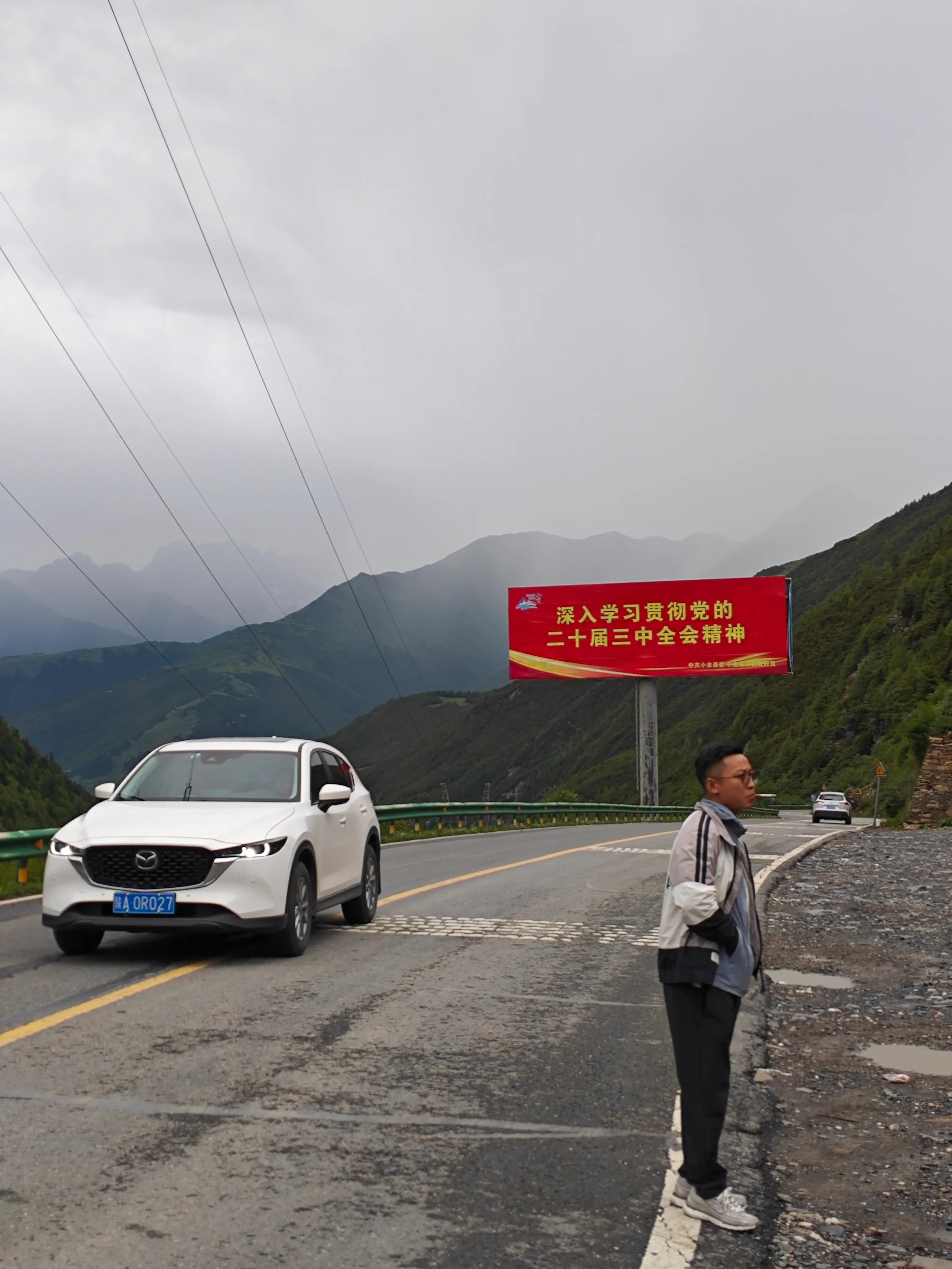 其实在贝母坪的时候,就开始下点小雨了。但据说高原上的雨,来一下就走了。所以我看雨一停就马上出发继续爬坡了。