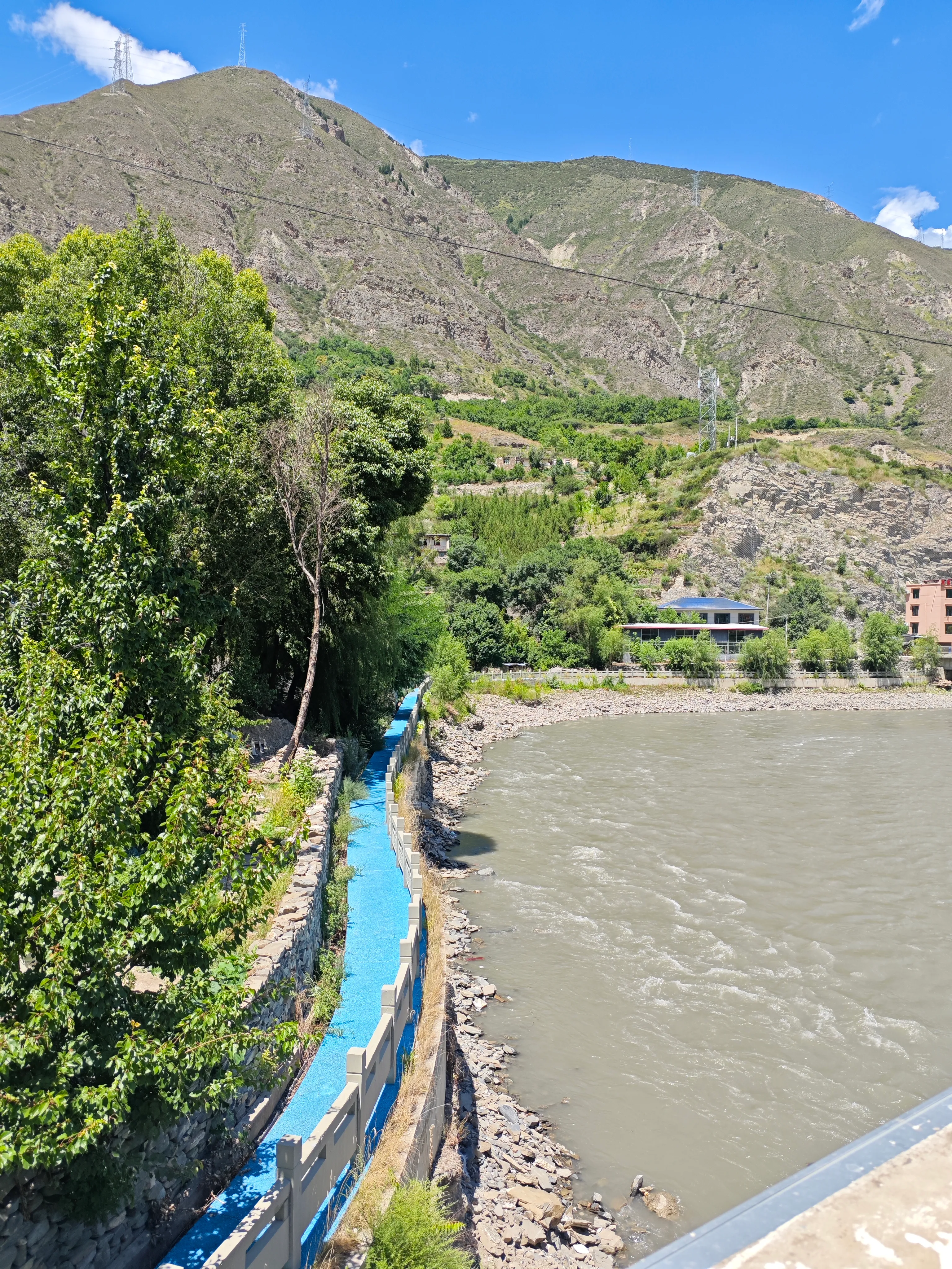 在靠近小金县城的地方,居然出现了沿河绿道。河水就是很浑浊,不知道有没有清的时候。