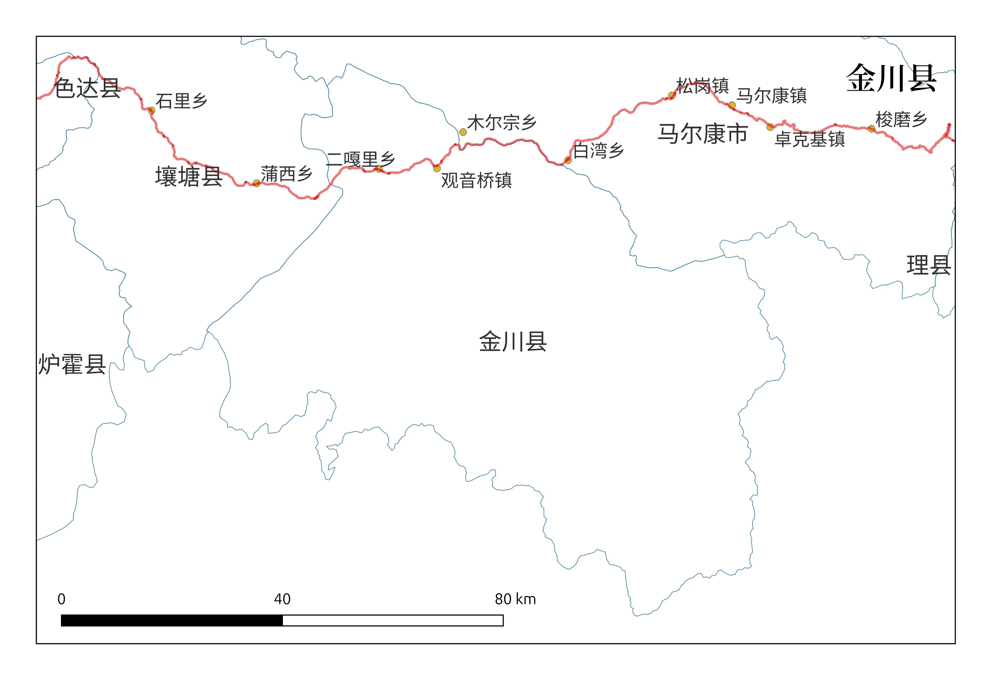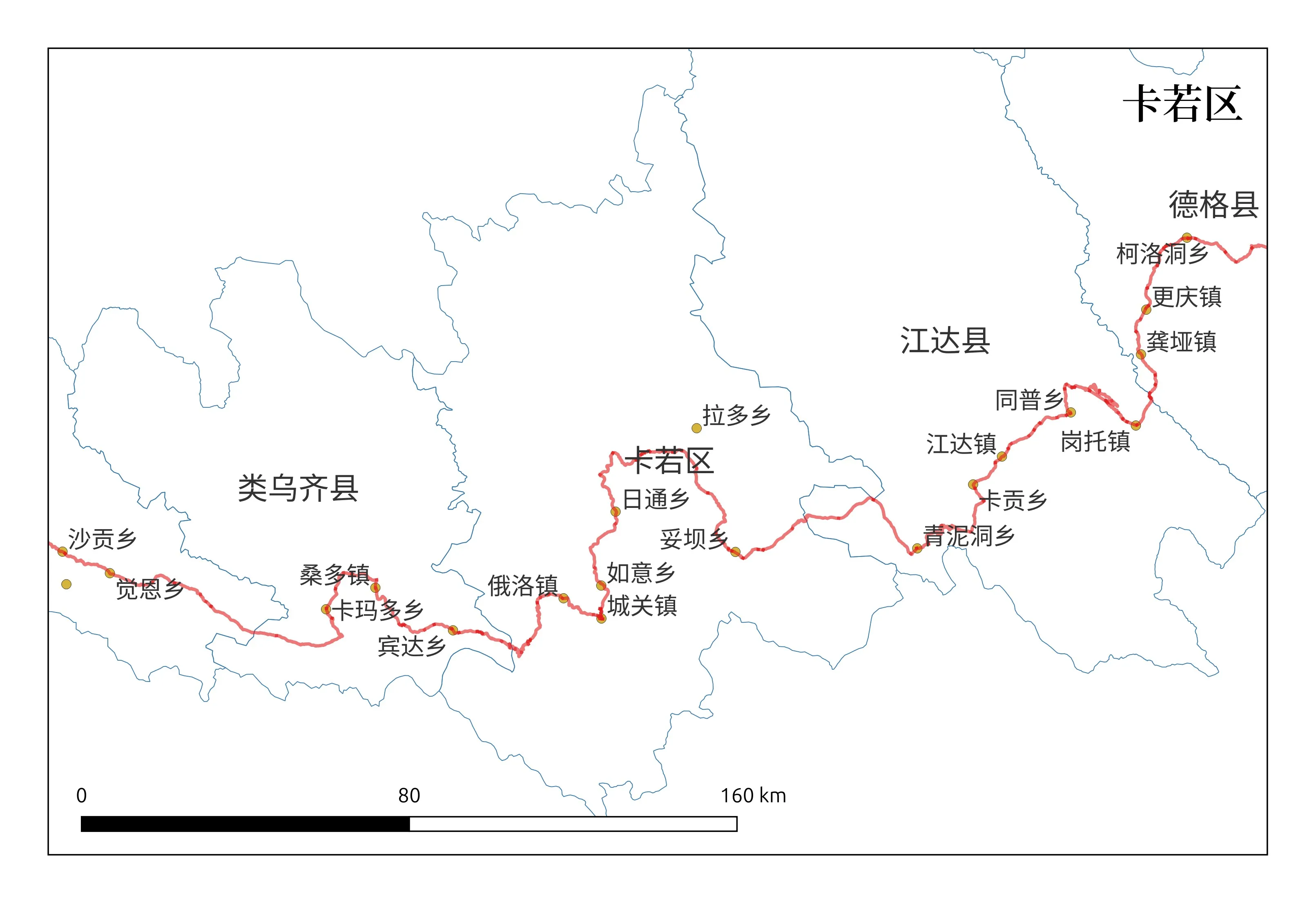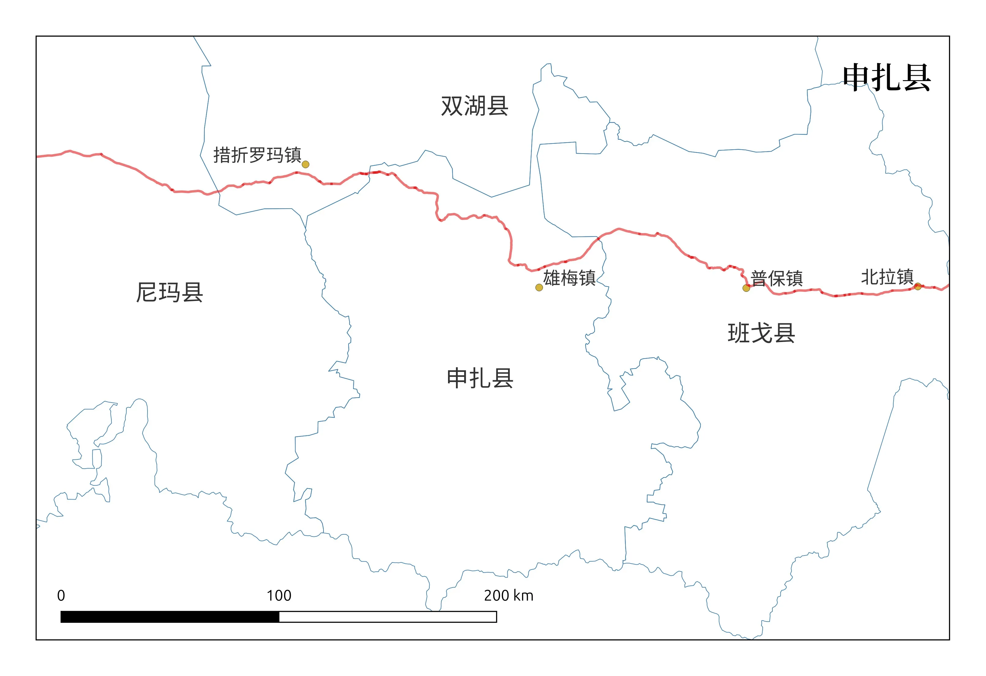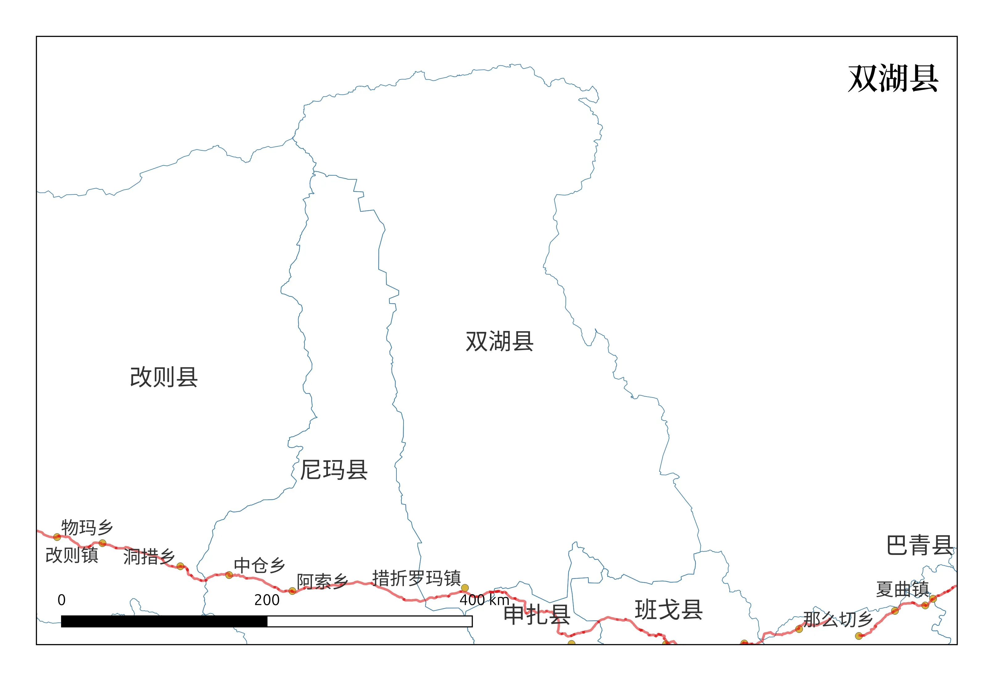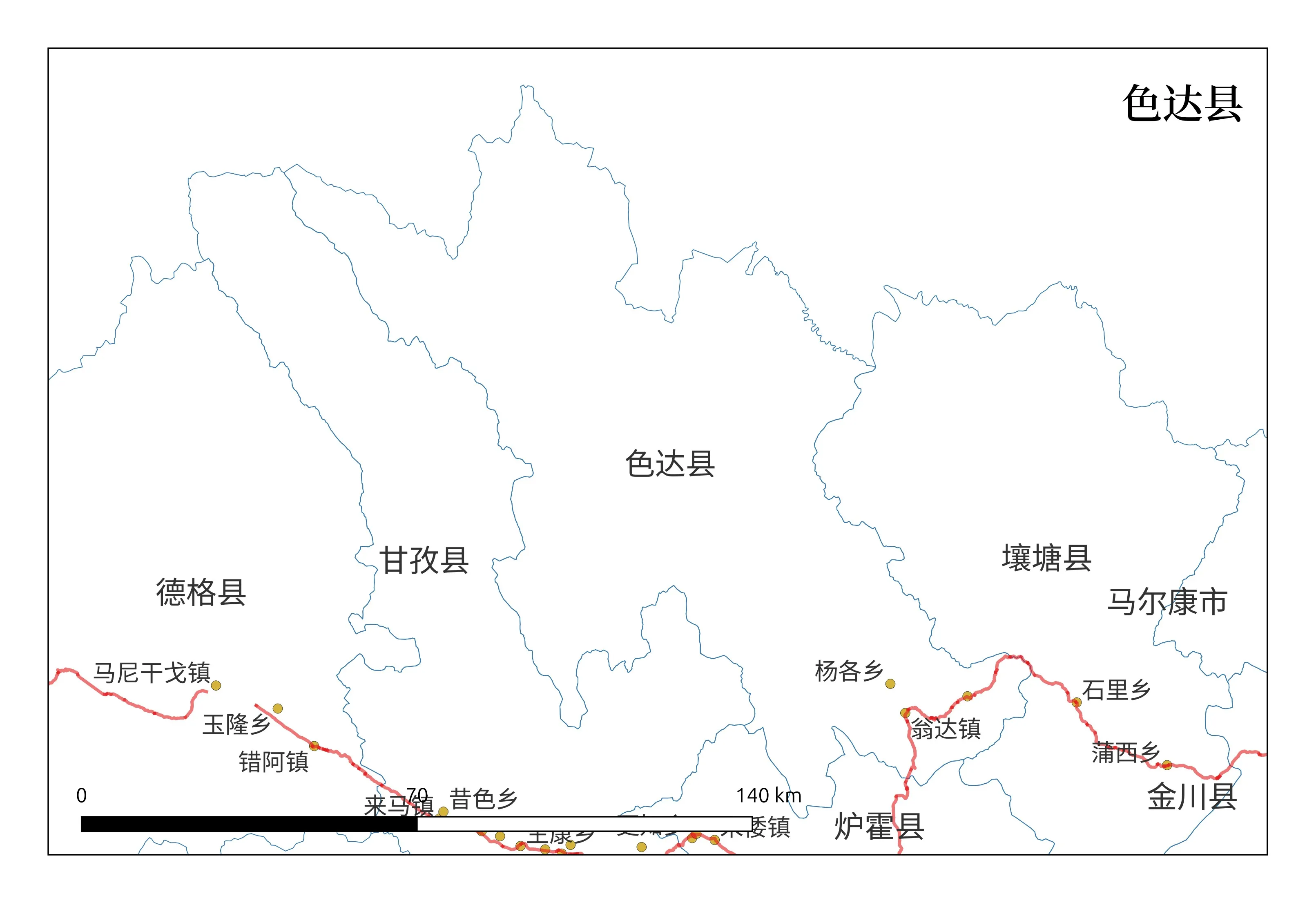 以下是按用qgis选择了路线10公里内的乡镇名称。在地图上,乡镇名称一般会标在乡镇的中心,一般也是最繁华的区域,但也不绝对。可以做为重要的参考。
